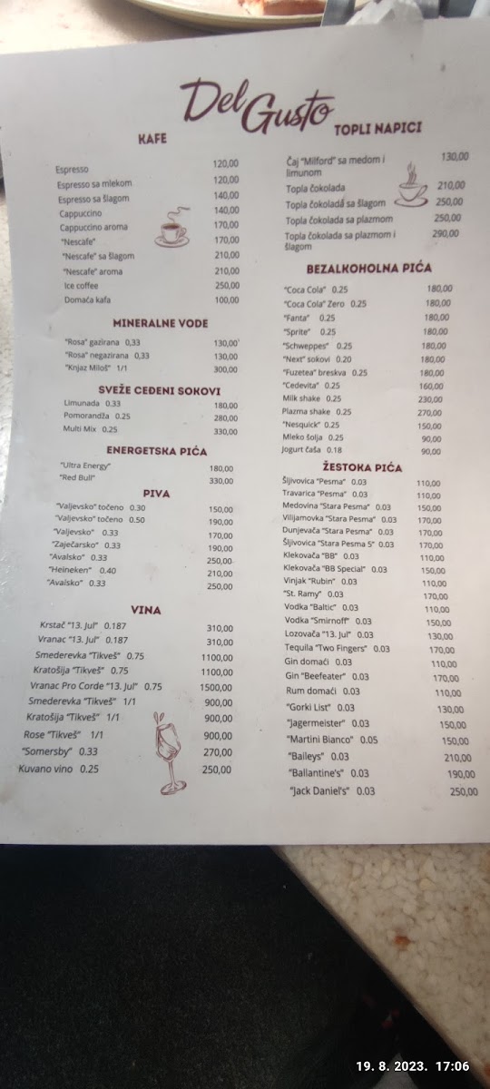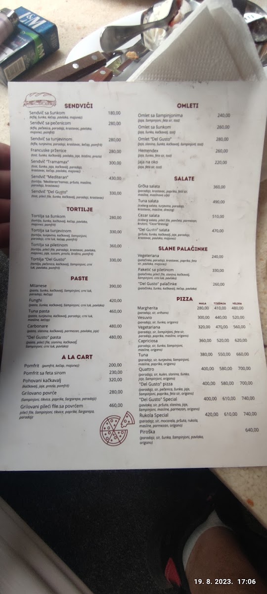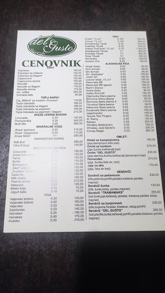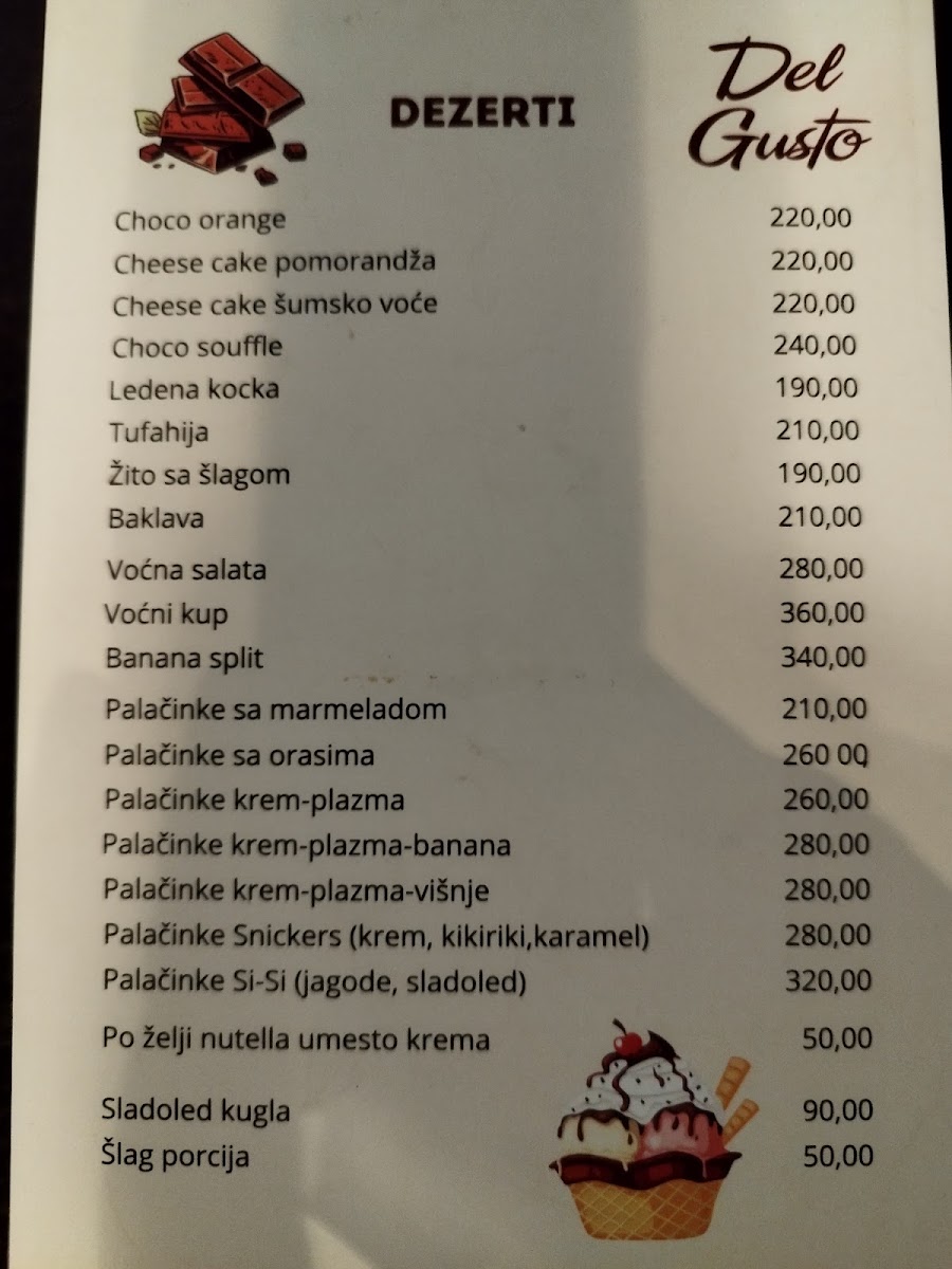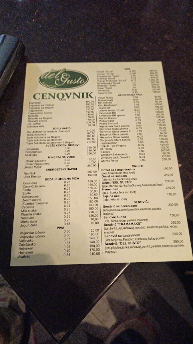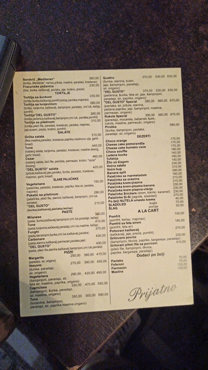 Del Gusto Menu